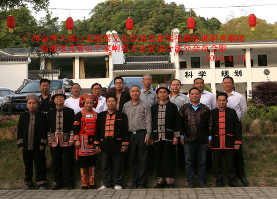 4月19日,广西金秀大瑶山尤绵文化促进会顾问、原贺州市民宗委主任黄盛全、广西金秀大瑶尤绵文化促进会常务副会长赵富金、副会长赵强等为首的“瑶族祖居地”调查团一行12人(均为纯正的瑶族后裔),不远千里,从广西来到龙窖山,在临湘市委统战部、临湘市龙窖山文物管理所、龙窖山村、龙窖山瑶文化促进会相关人员的陪同下,怀着无比崇敬、期待的心情开始了龙窖山寻根问祖、瑶族传统节日盘王节(还盘王愿)祭祀文化发源地考察活动。