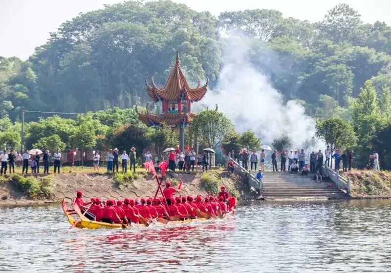 走进活动现场,恰逢游船招魂、祭祀屈原活动,怀仁亭下,典仪官、主祭官、礼生、执事静静肃立,在悠扬的楚乐声中,一行人向屈原敬献鲜花、蔬果、粽子、稻米糕点。主祭官上香、献酒、跪祭,面朝江面诵读祭文。最后,汨江两旁的乡亲们向江中投放粽子、鲜花。古色古香的古代祭祀礼仪、庄重肃穆的传统文化氛围吸引了众多游客驻足观看。祭文读毕,三艘龙舟应声下水,游船招魂,汨江故道旁,一声声“归来兮——归来兮——”如泣如诉,婉转、悲壮的游江招魂声中,数万楚乡儿女齐立江边同祭屈原,共同悼念这位伟大的爱国诗人。相传,这是屈原怀石自沉后,屈原妹妹屈幺姑一边划船哭喊:“我哥哟,回哟嗬……”一边把米粮撒进江里,祈求水神不要伤害哥哥。乡亲们也纷纷驾舟追随,这种游江招魂纪念屈原的形式沿袭至今。