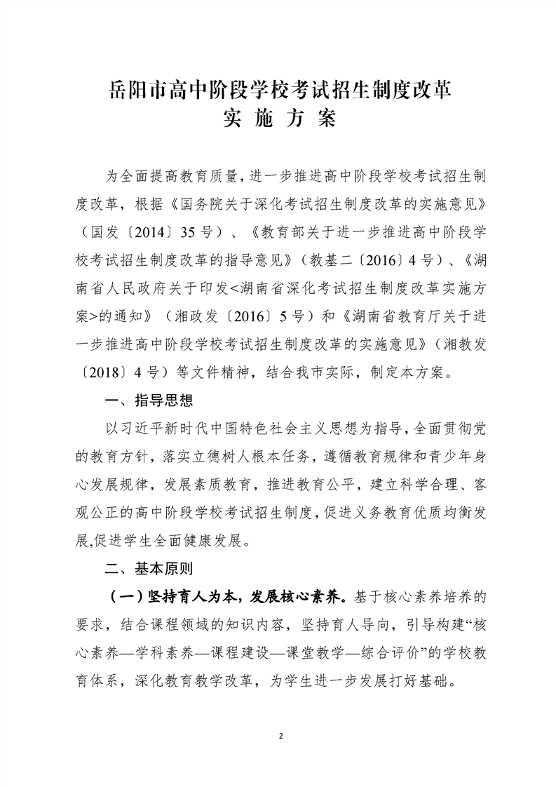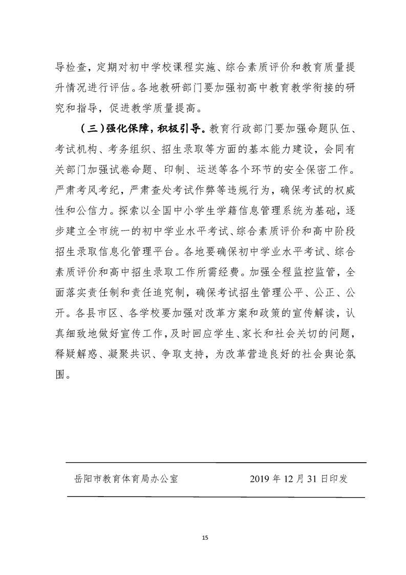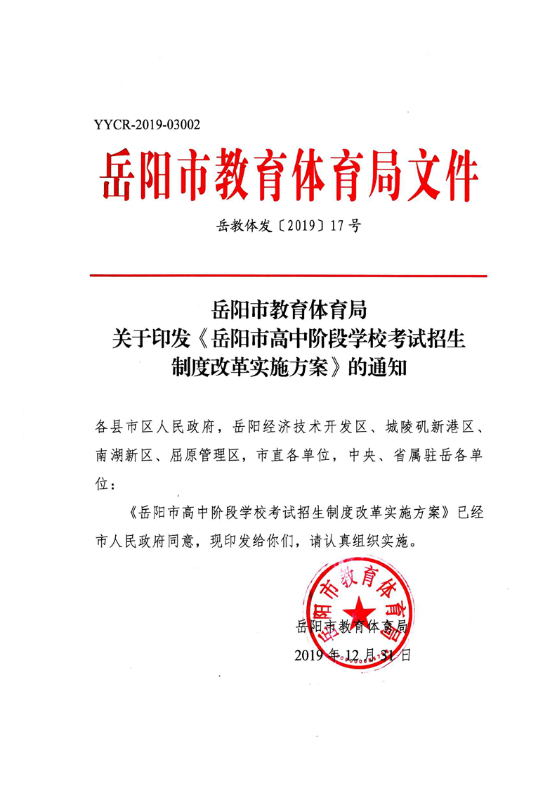 岳阳市教育体育局关于印发《岳阳市高中阶段学校考试招生制度改革实施方案》的通知(岳教体发〔2019〕17号)