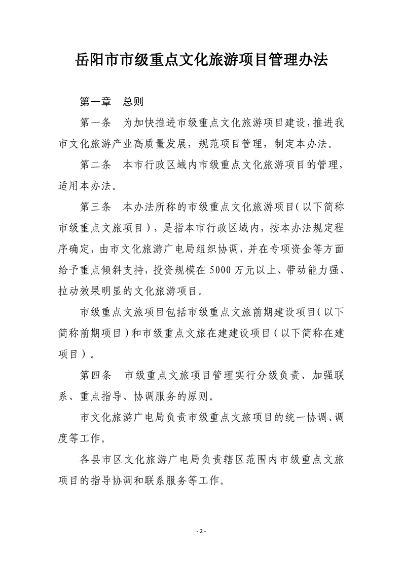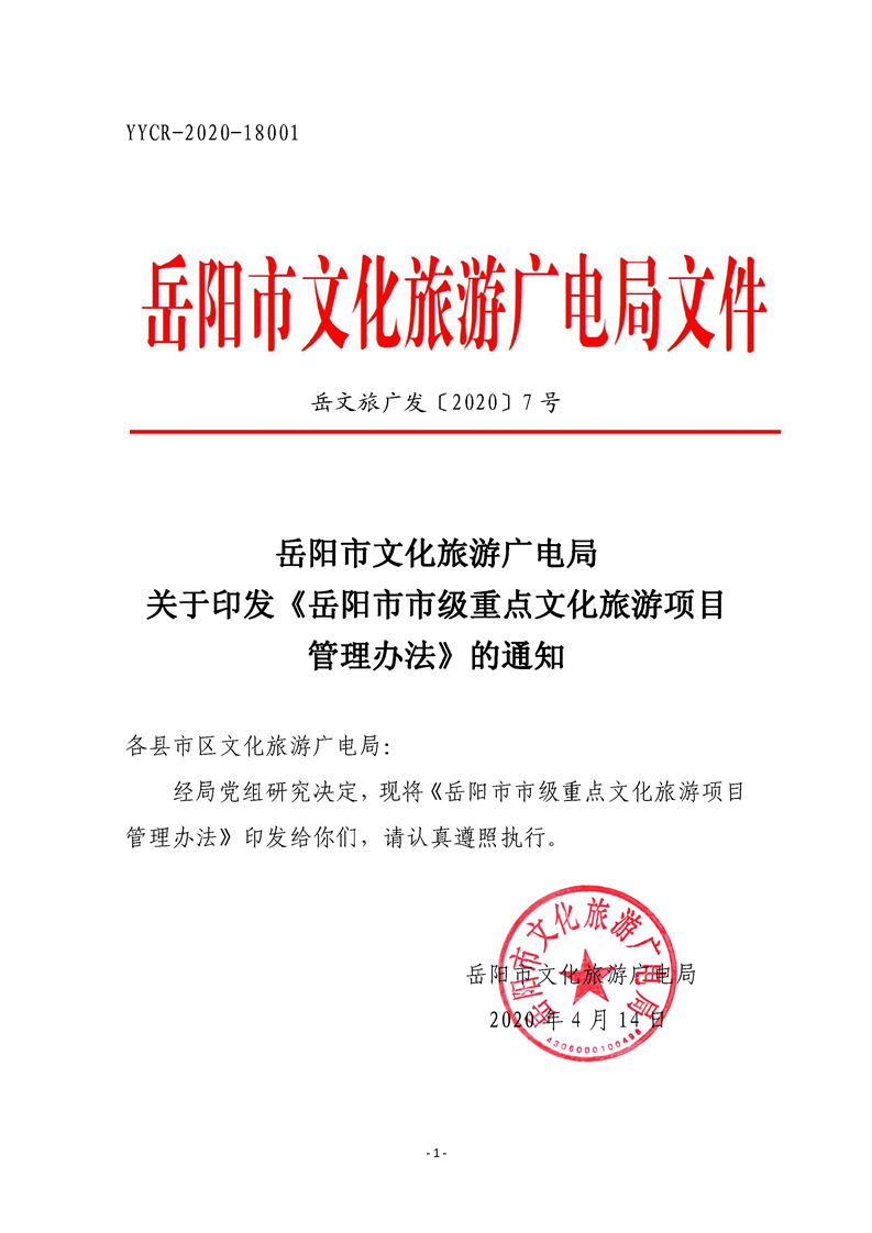 岳阳市文化旅游广电局关于印发《岳阳市市级重点文化旅游项目管理办法》的通知(岳文旅广发〔2020〕7号)