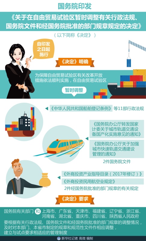 图解:国务院印发《关于在自由贸易试验区暂时调整有关行政法规、国务院文件和经国务院批准的部门规章规定的决定》