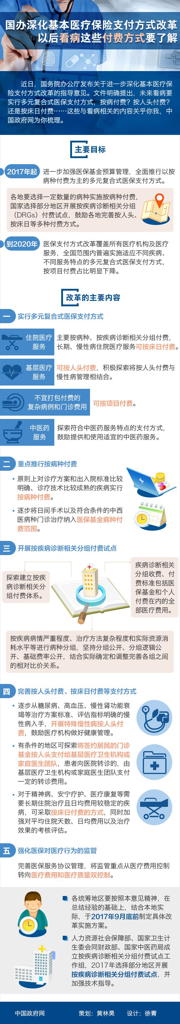 近日,国务院办公厅发布关于进一步深化基本医疗保险支付方式改革的指导意见。文件明确提出,未来看病要实行多元复合式医保支付方式,按病付费?按人头付费?还是按床日付费……这些与看病相关的内容关乎你我,中国政府网为你梳理。