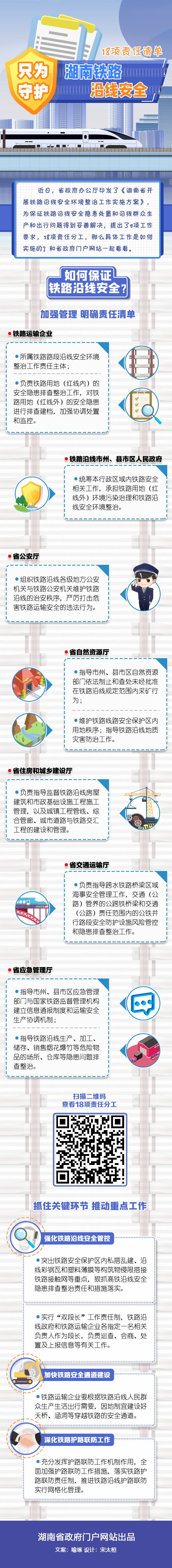 》》相关文件:湖南省人民政府办公厅关于印发《湖南省开展铁路沿线安全环境整治工作实施方案》的通知(湘政办发〔2019〕48号)