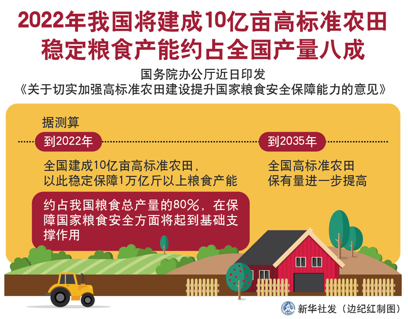 图解:2022年我国将建成10亿亩高标准农田 稳定粮食产能约占全国产量八成