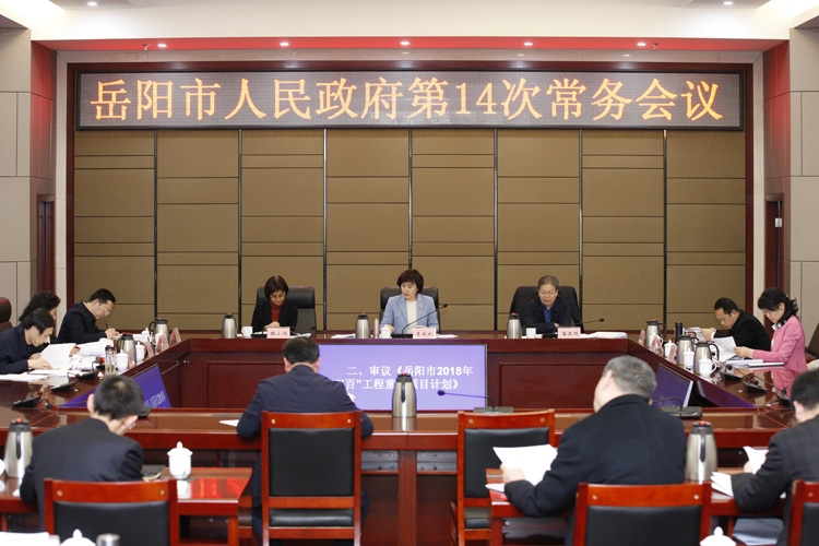 昨天下午,市委副书记、代市长李爱武主持召开市政府第14次常务会议,听取生态环保有关情况、延寿嘉园定向限价商品房建设等9个政府投资项目审定及办理建议、临湘市撤销长安、五里牌街道设立长安、五里牌、云湖街道等情况汇报,审议《岳阳市2018年“双百”工程重大项目计划》、《岳阳市机动车停车管理条例》。
