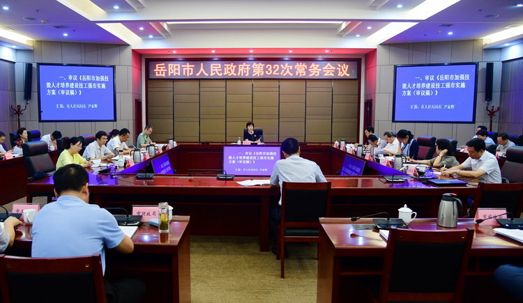 9月29日下午,市长李爱武主持召开市政府第32次常务会议,审议《岳阳市加强技能人才培养建设技工强市实施方案》,听取《岳阳市普通国省道国土空间控制规划(国道)》编制工作情况汇报,审议《岳阳市国有土地上房屋征收与补偿实施办法》。