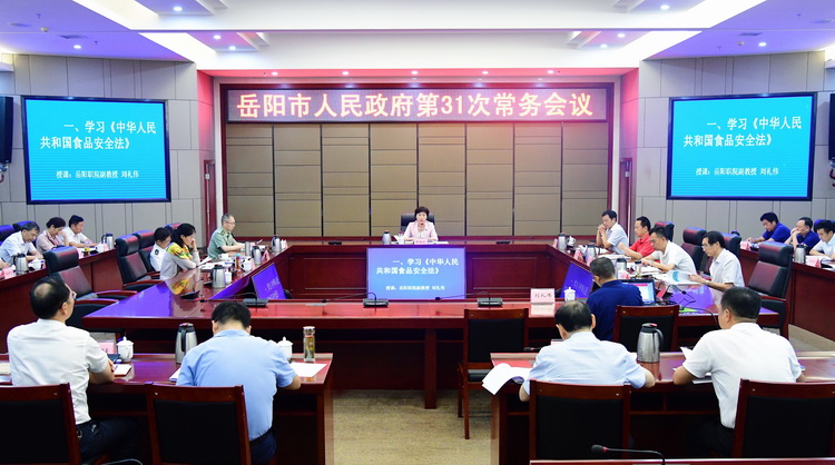 昨天上午,市长李爱武主持召开市政府第31次常务会议,学习《中华人民共和国食品安全法》,传达学习中共中央、国务院《关于深化改革加强食品安全工作的意见》,审议《岳阳市乡村振兴战略规划(2018—2022年)》《关于进一步加强统计基层基础工作的通知》,听取市本级职工医保基金、国庆安保工作情况汇报等。