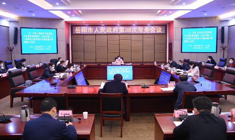 3月20日上午,市长李爱武主持召开市政府第38次常务会议,听取省政府真抓实干督查激励措施工作、全市2020年污染防治攻坚战、全市信访工作等情况汇报,审议《关于加强市中心城区电动车管理的通告》《岳阳市行政审批中介服务事项清单(2020版)》《岳阳市行政审批中介服务超市管理暂行办法》等。