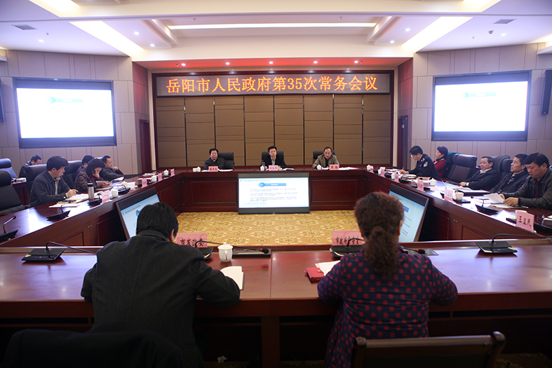 昨天下午,市长盛荣华主持召开市政府第35次常务会,审议《关于促进岳阳城陵矶“一区一港四口岸”加快发展的奖励办法》(试行),听取《政府工作报告》目标任务分解情况汇报,研究部署当前工作。