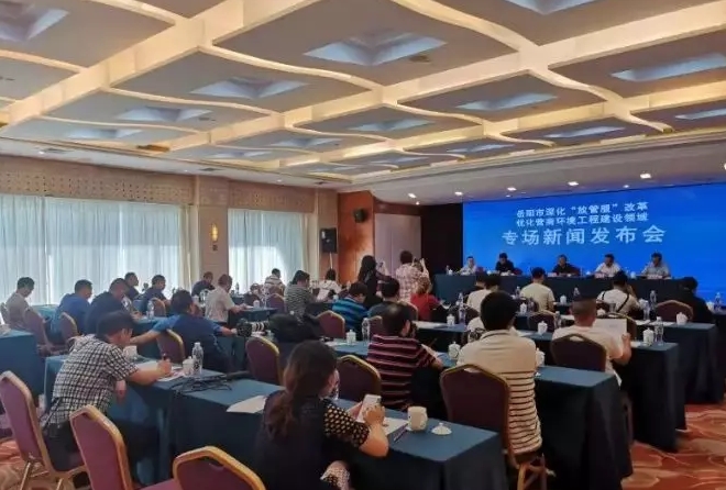 7月31日下午,岳阳市深化“放管服”改革优化营商环境工程建设领域专场新闻发布会举行。市发改委党组成员周孝元、市自然资源和规划局副局长严菲、市住建局党组成员胡列宇、市优化办主任陈岳林发布新闻并答记者问。岳阳市委宣传部对外宣传办主任陈徐恩主持新闻发布会。