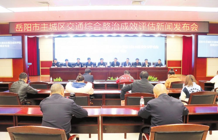 岳阳市主城区交通综合整治成效评估新闻发布会现场