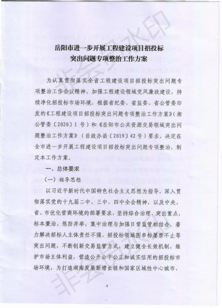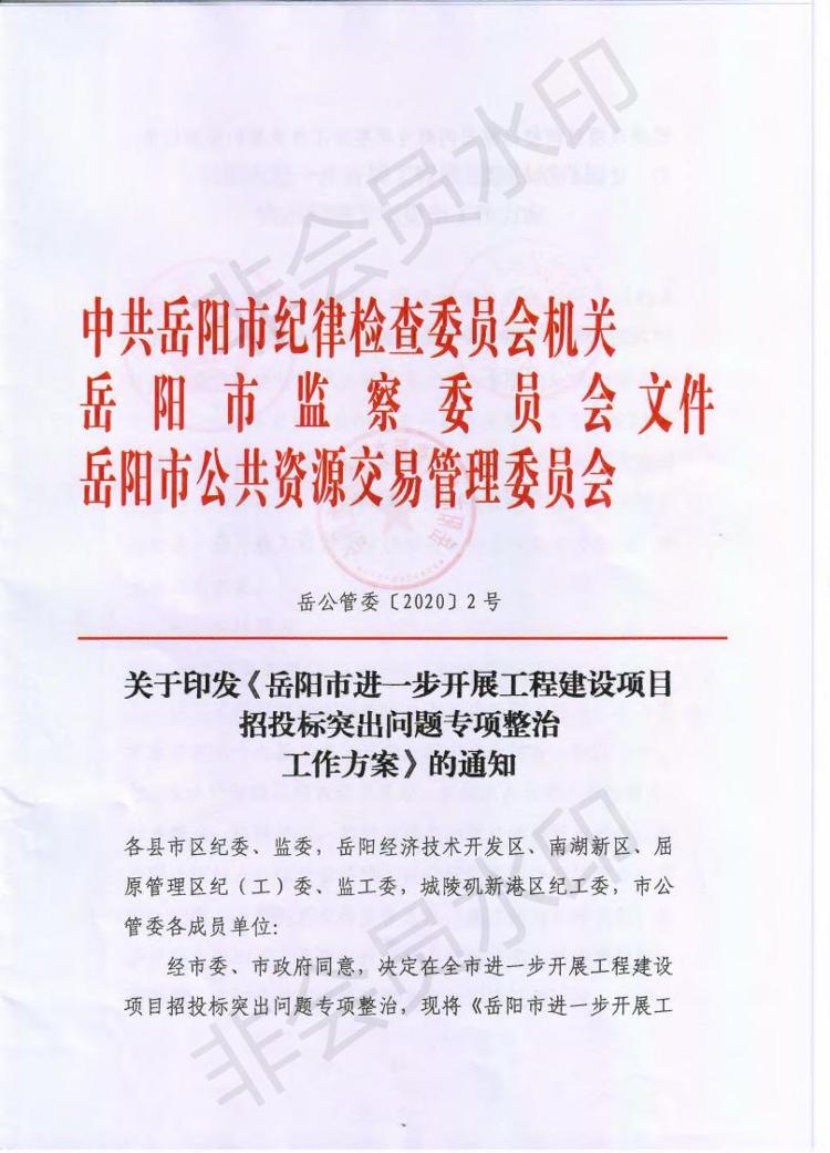 关于印发《岳阳市进一步开展工程建设项目招投标突出问题专项整治工作方案》的通知