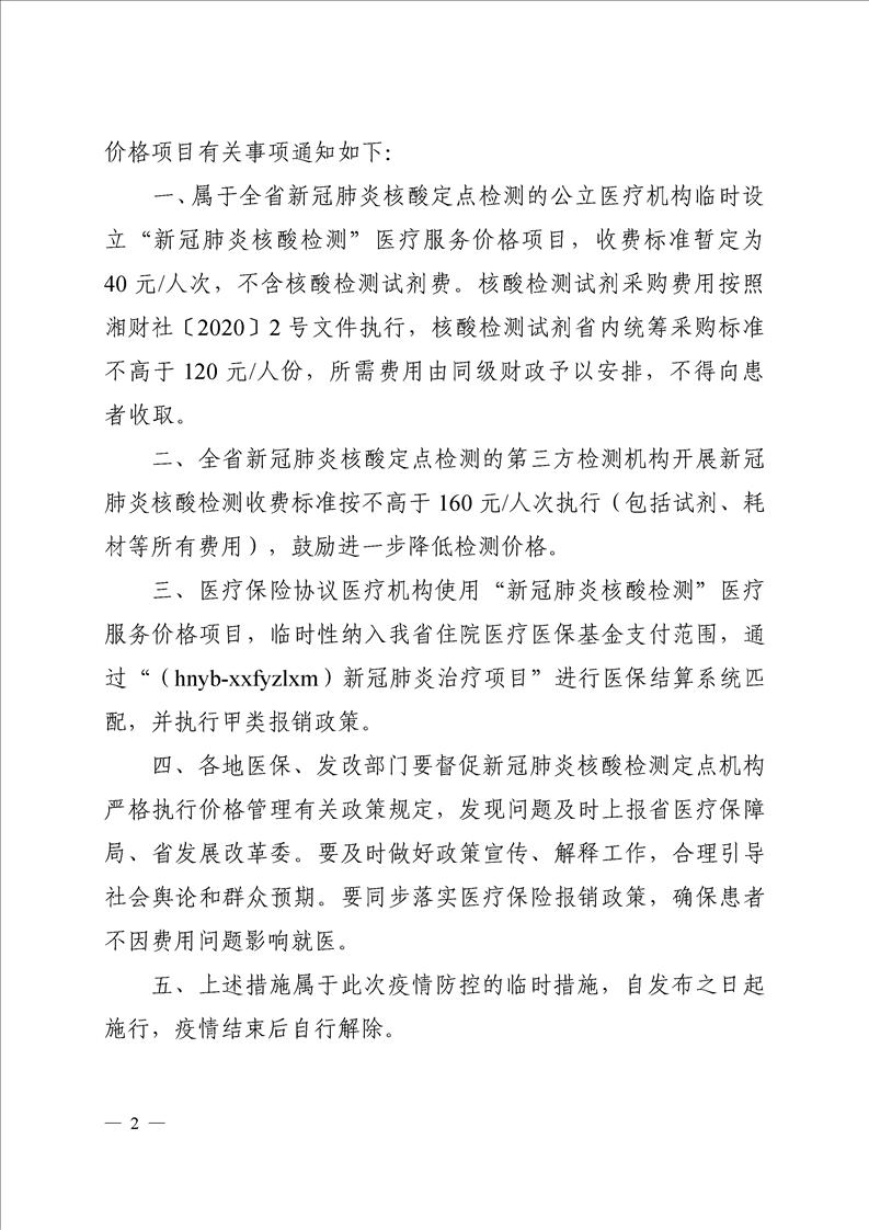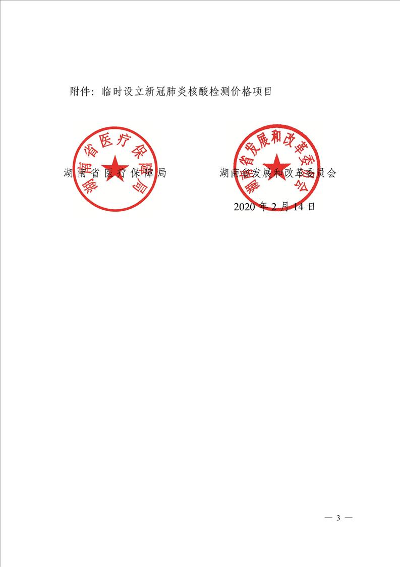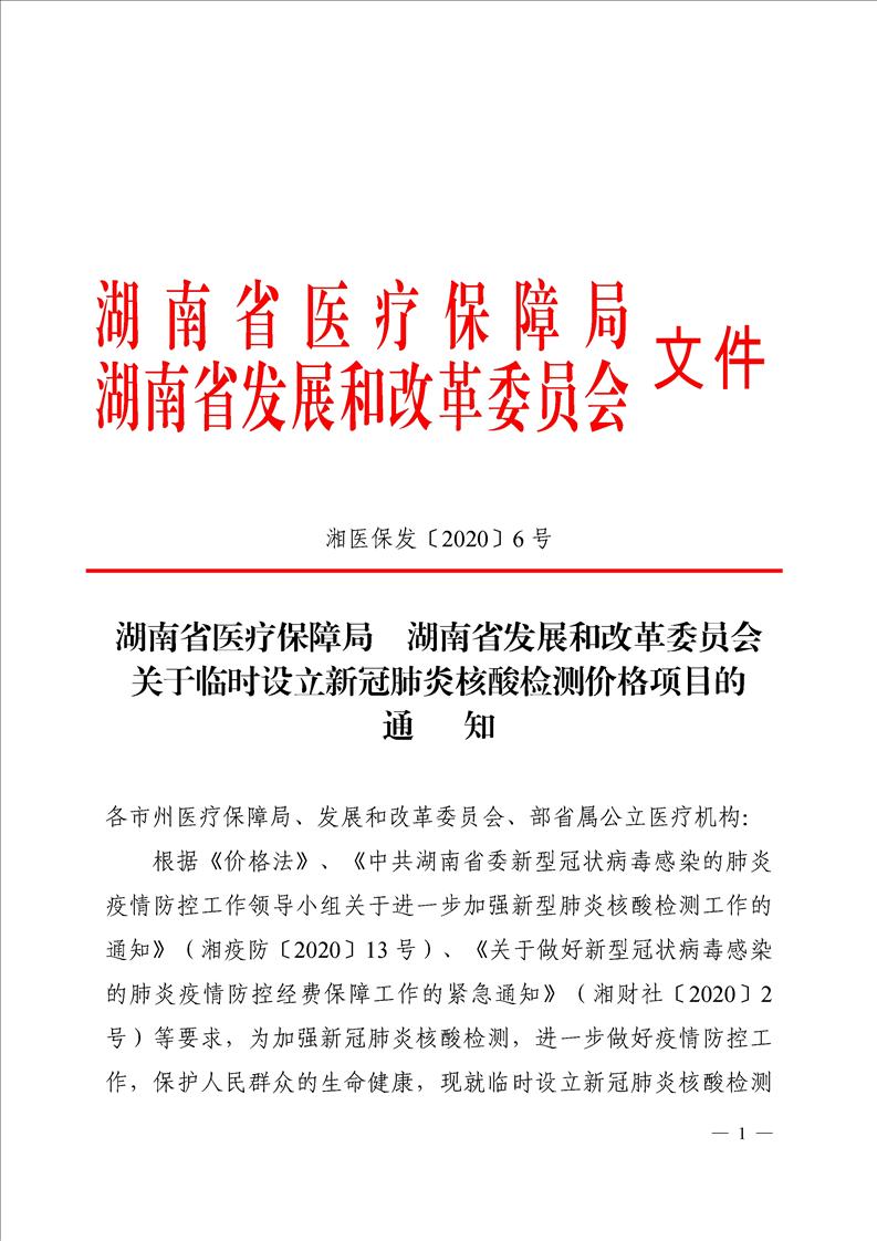 关于临时设立新冠肺炎核酸检测价格项目的通知