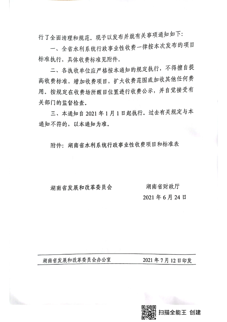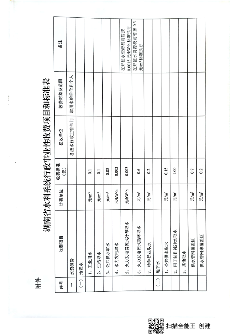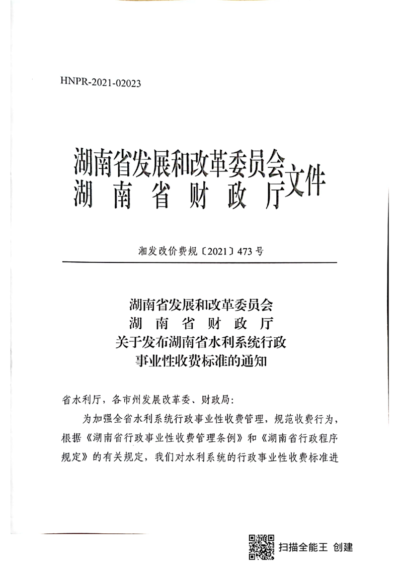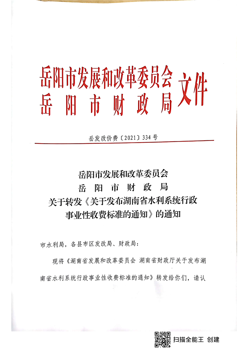 关于发布湖南省水利系统行政事业性收费标准的通知