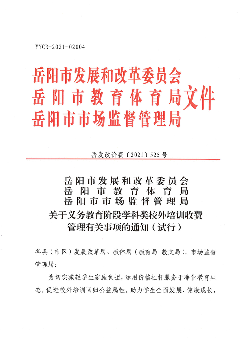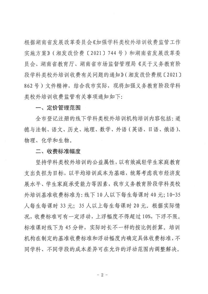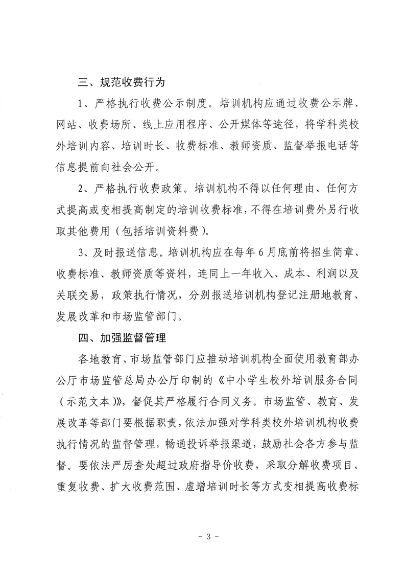 关于义务教育阶段学科类校外培训收费管理有关事项的通知(试行)