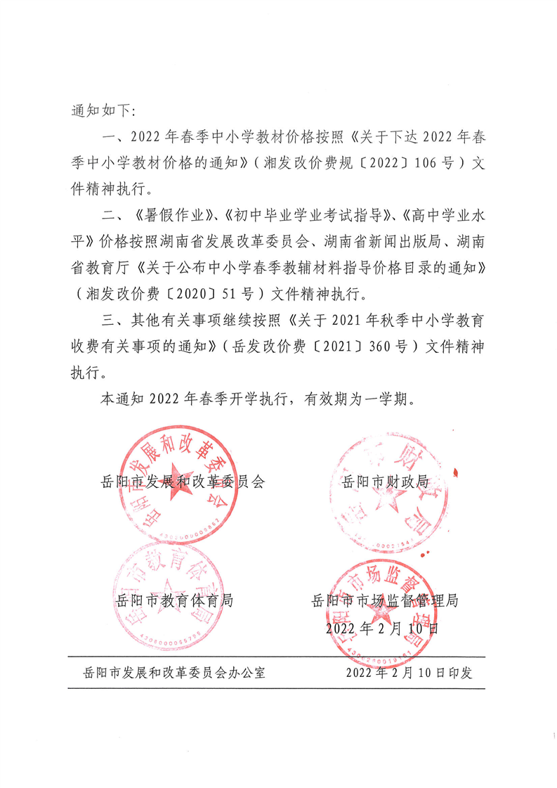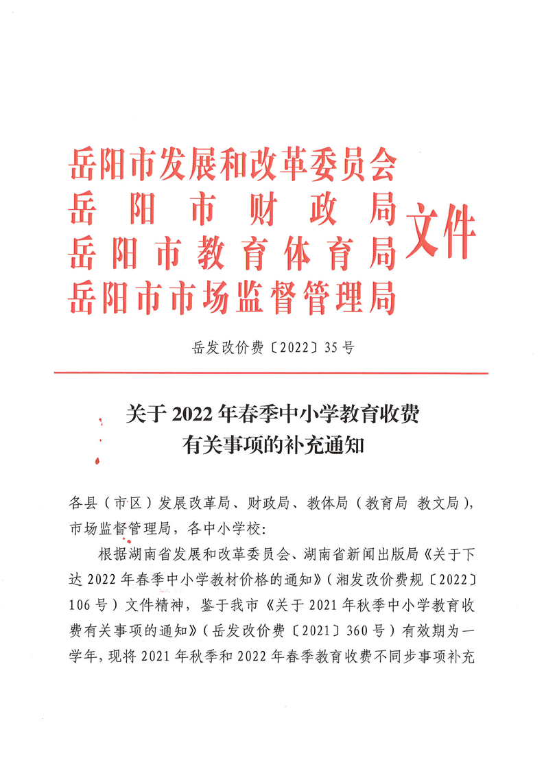 关于2022年春季中小学教育收费有关事项的补充通知