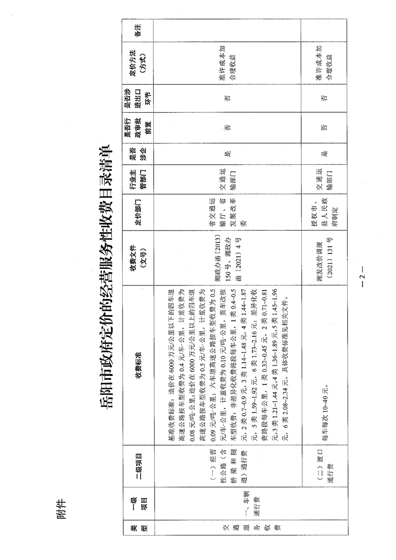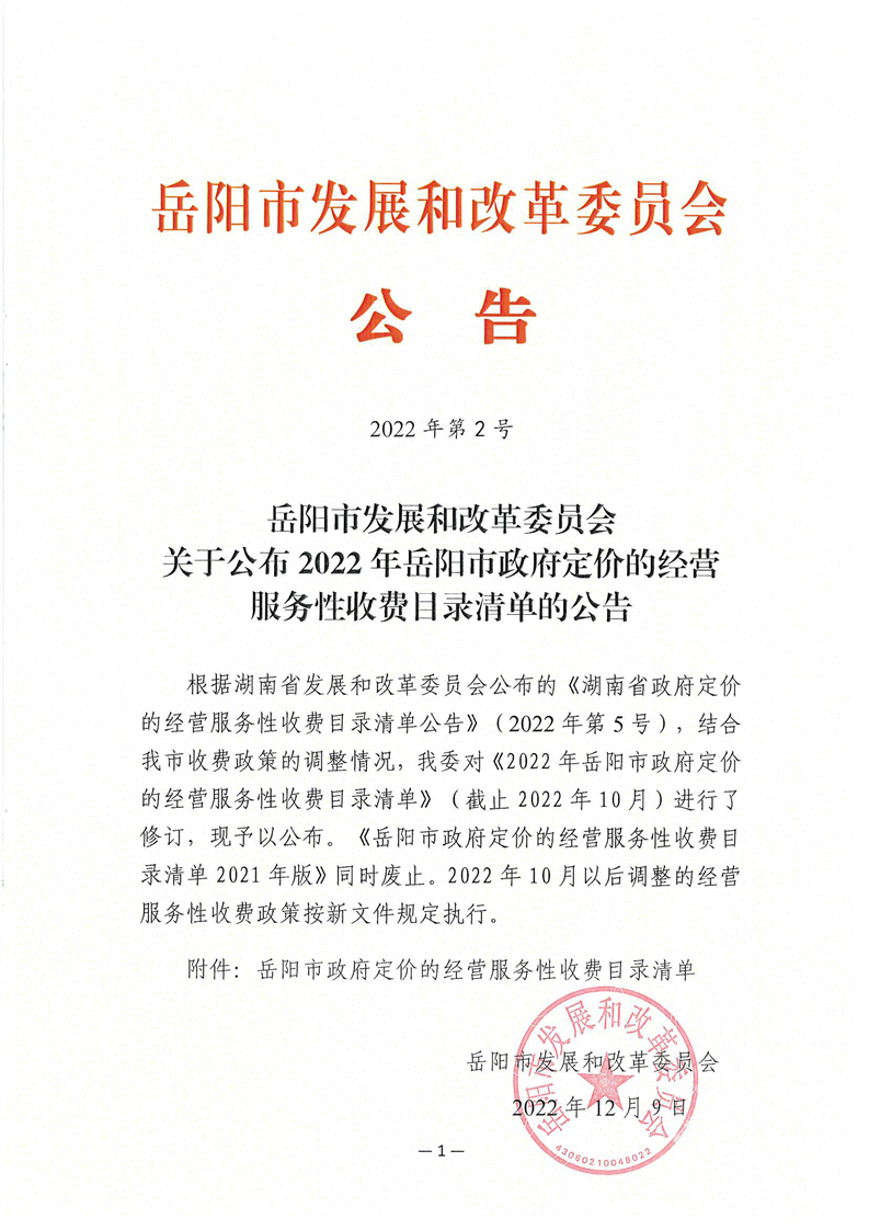 关于公布2022年岳阳市政府定价的经营服务性收费目录清单的公告