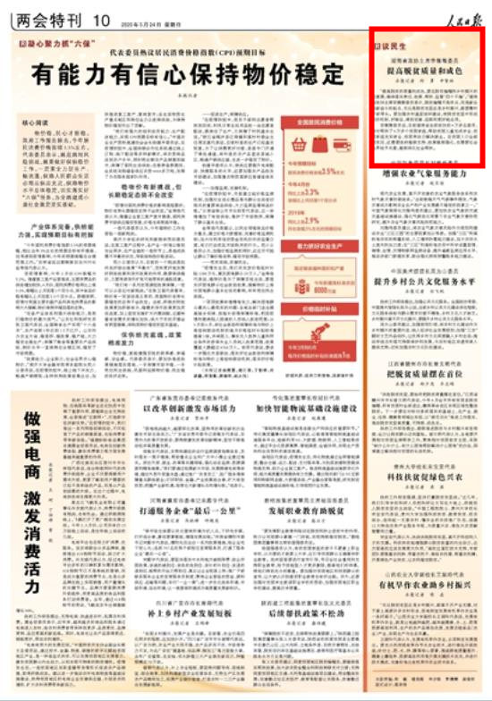 政府工作报告强调,坚决打赢脱贫攻坚战。“这几年,我们引导学校科研人员把科研论文写在大地上,积极投入脱贫攻坚的主战场。”中国工程院院士、贵州大学校长宋宝安代表说,贵州大学加强科技扶贫、教育扶贫、校农结合,组织起一支爱农村、懂农业的农技推广队伍,组建12大特色优势产业服务专班,为质量兴农、绿色兴农贡献智慧和力量。