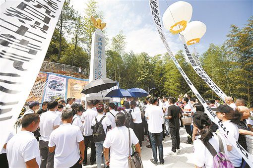 8月5日上午,衡阳县洪市镇明翰村,“鸿翔部队抗日烈士纪念碑”揭幕,4名烈士遗骸被集中安置在纪念碑后方的墓穴中。“鸿翔部队”组建于1944年1月,是中国军队历史上的第一支伞兵部队。1945年8月5日,鸿翔部队4名伞兵在湖南台源寺突袭战中牺牲。何衡 钟仲华 摄影报道