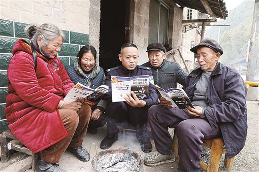 (2020年12月8日,保靖县公安局清水坪派出所的民警在黄连村给村民宣传扫黑除恶知识。俞采华 张昌峰 摄影报道)