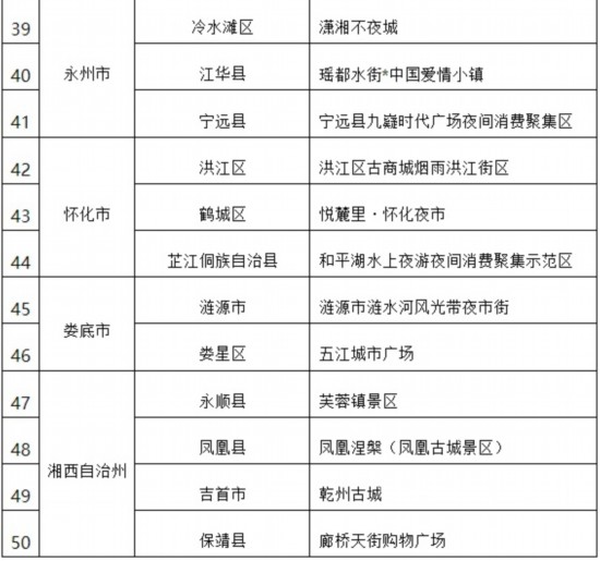 为推动“夜经济”高质量发展,进一步扩消费促就业,日前,经县(区、市)自愿申报、市州商务局初审推荐,湖南省商务厅组织专家评审,拟评选“长沙市黄兴南路步行商业街”等50家为首批湖南省夜间消费聚集示范区,现予以公示。
