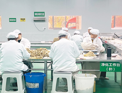 | 芦小妹食品有限公司员工正对芦笋进行加工。 |