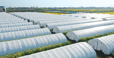 | 采用“菇—稻—菇”轮作模式的芦菇大棚。 |