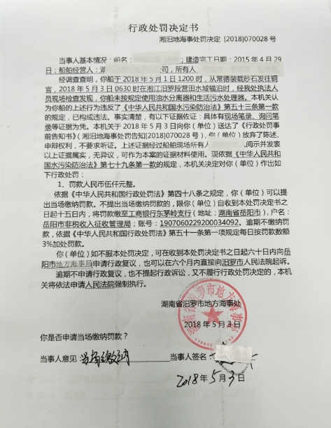 湘汨地海事处罚决定[2018]070028号