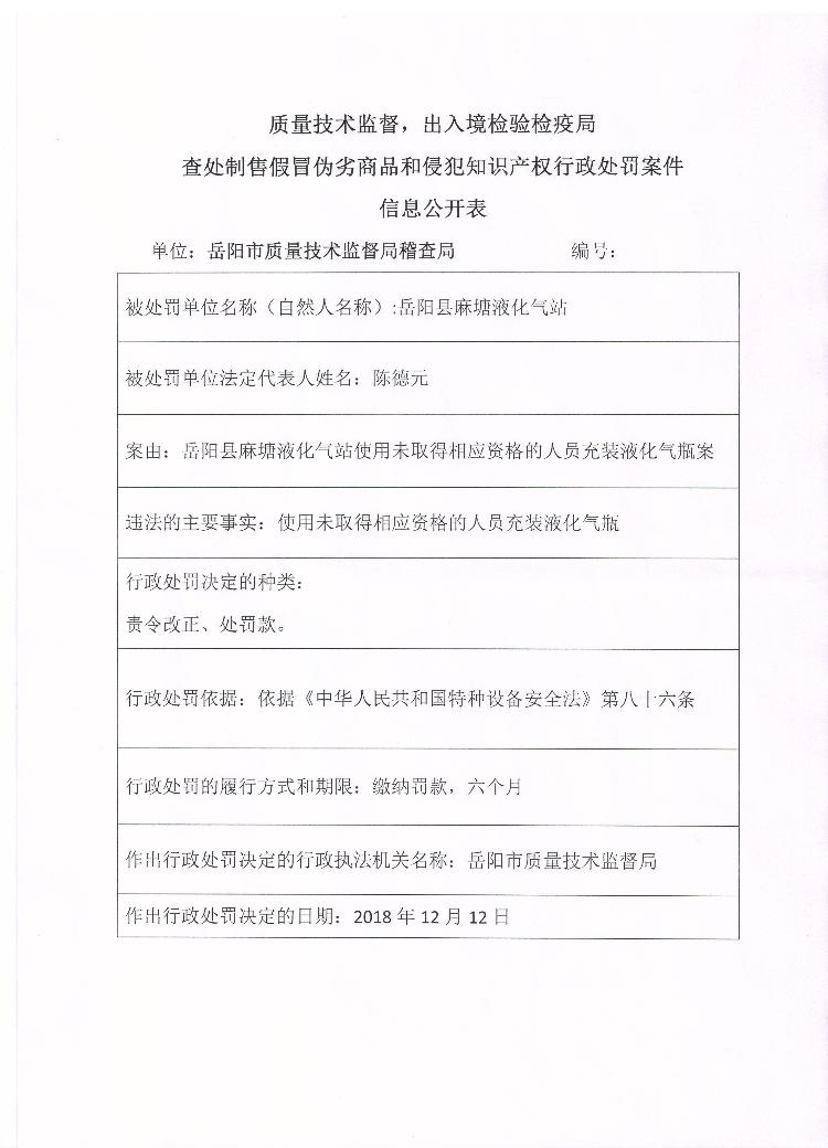 岳阳县麻塘液化气站作业人员无证充装案