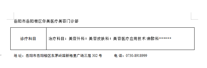 岳阳市岳阳楼区你美医疗美容门诊部 |