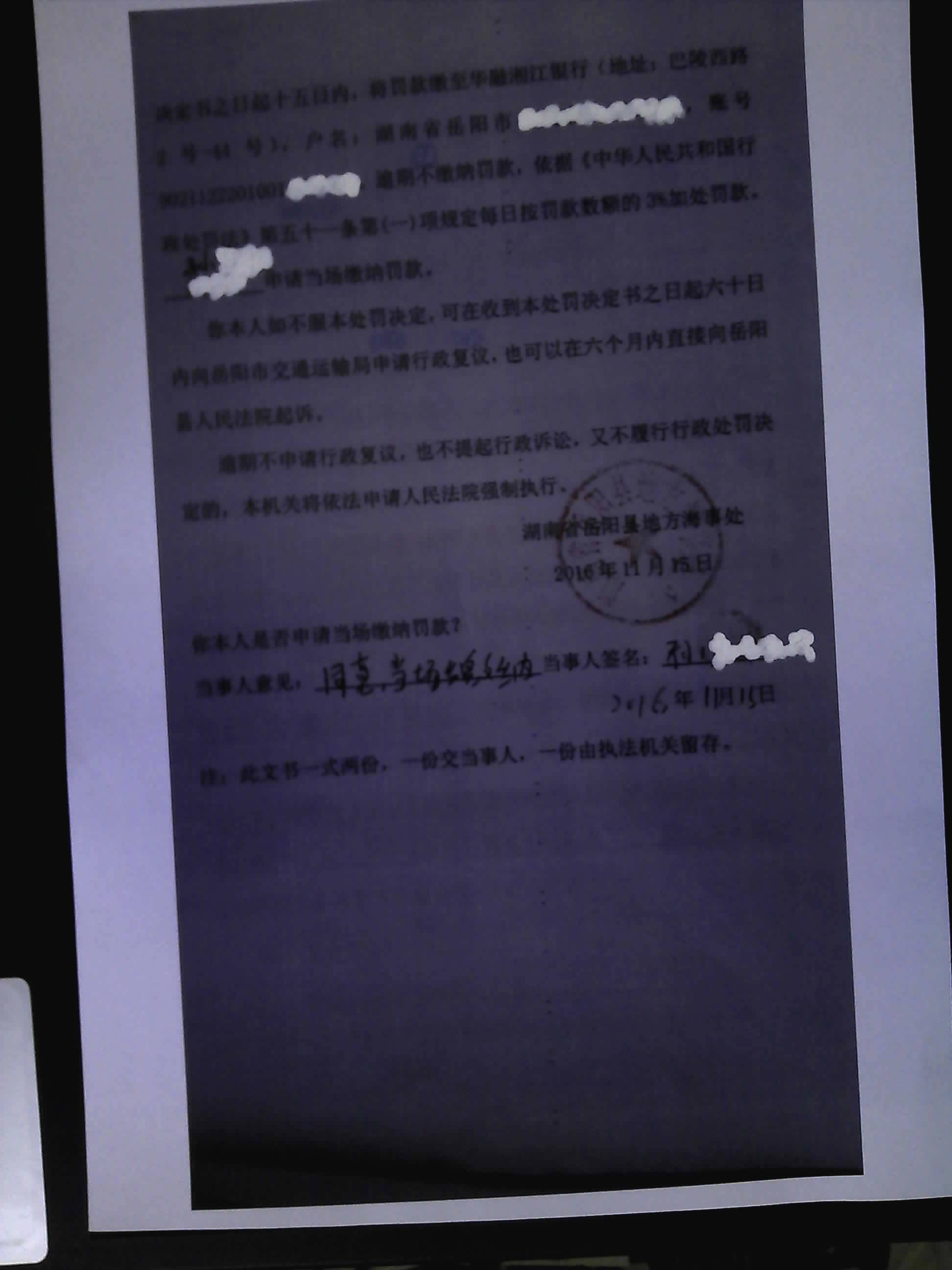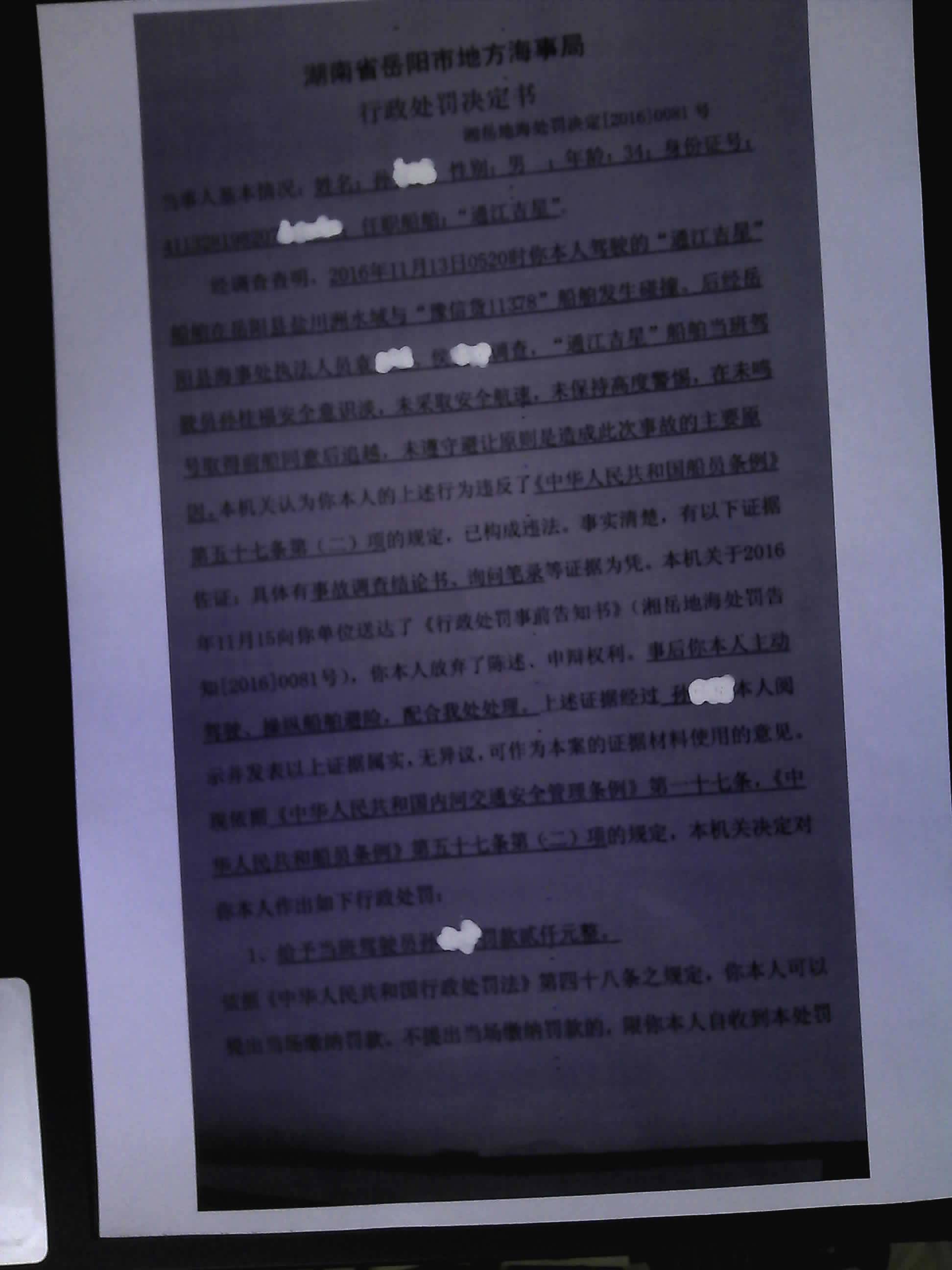 湘岳县海事处罚决定[2016]0081号