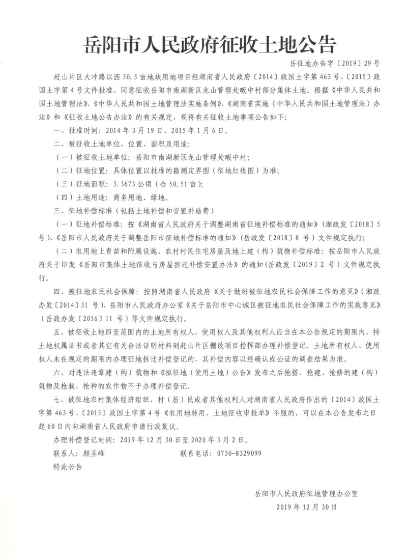 赶山片区大冲路以西50.5亩征收土地公告〔2019〕29号