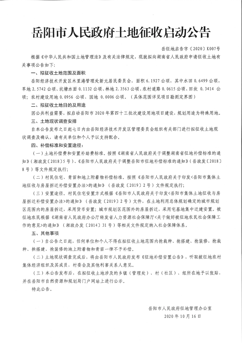 岳阳市2020年第四十三批次建设用地项目新闻发布