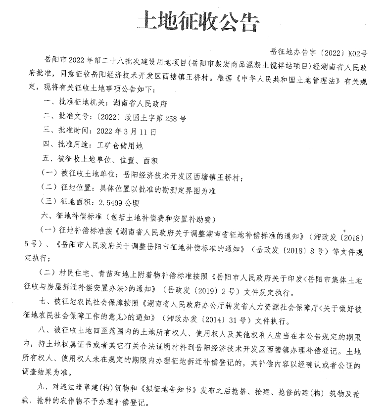 岳阳市2022年第二十八批次建设用地项目(原岳阳市凝宏商品混凝土搅拌站项目)新闻发布