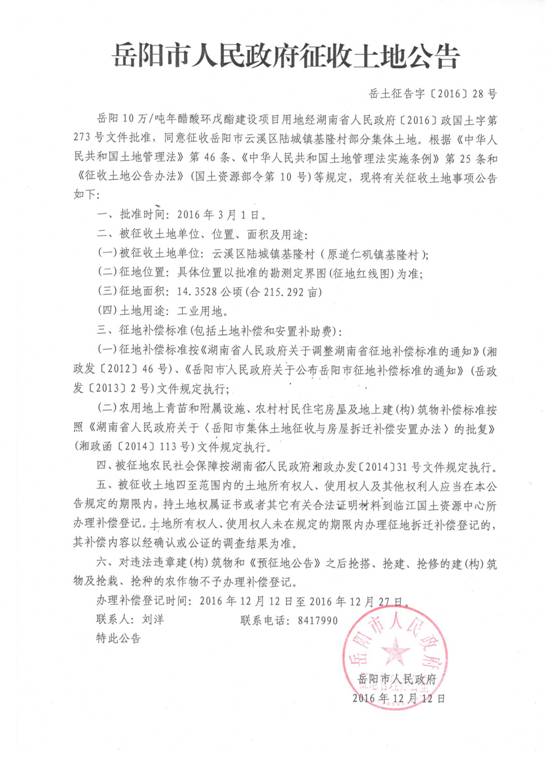 岳阳市人民政府征收土地公告|岳土征告字〔2016〕28号