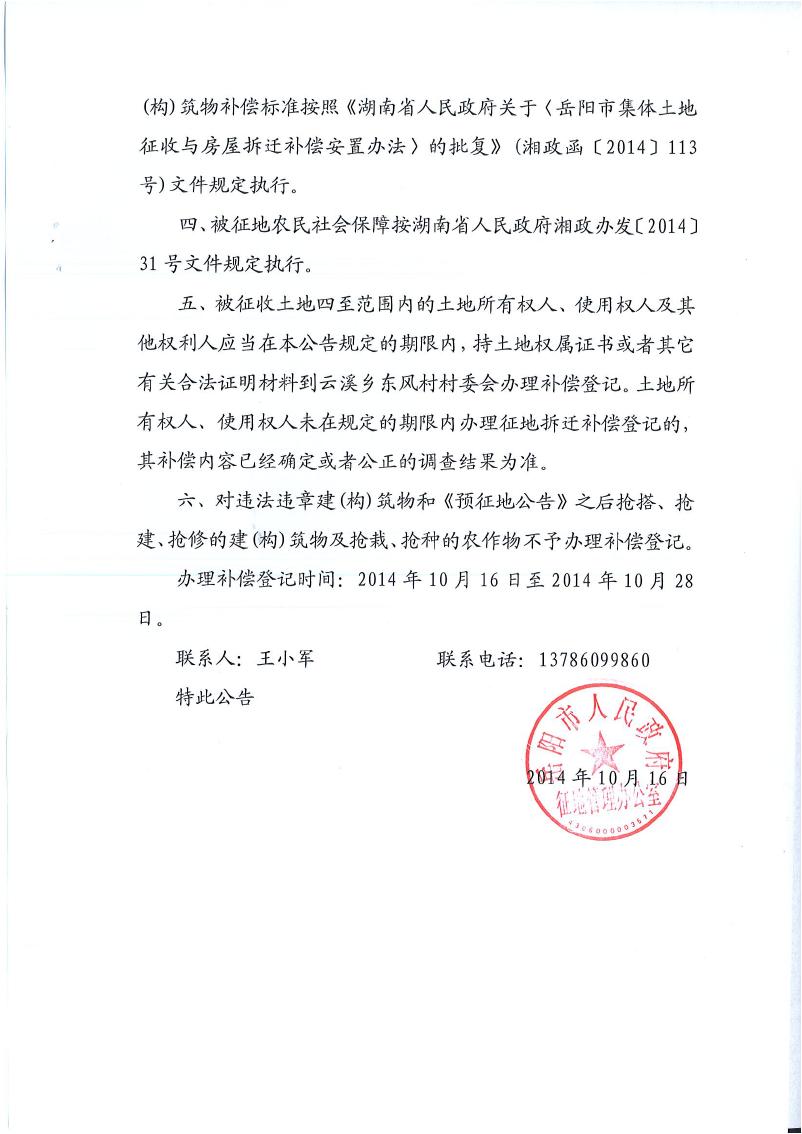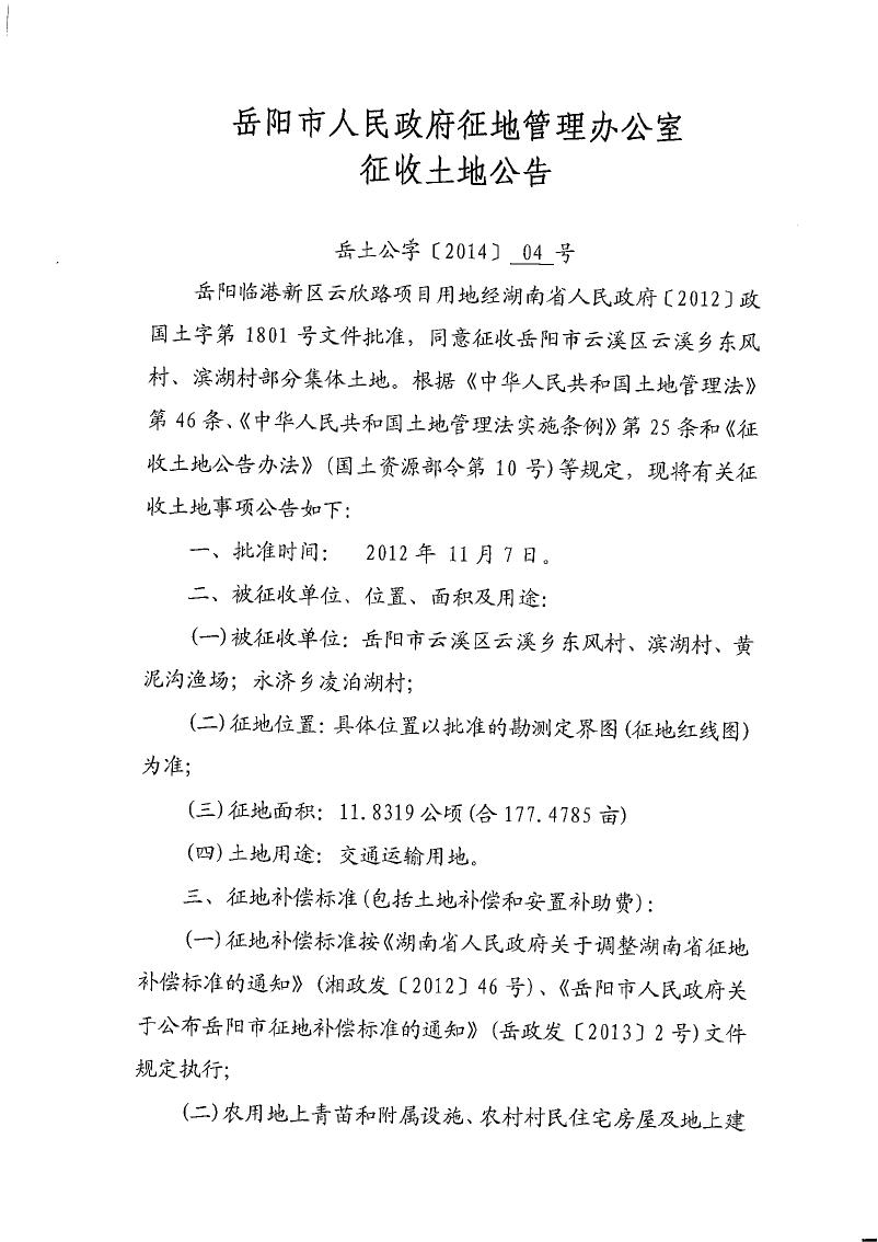 岳阳市人民政府征地管理办公室征收土地公告|岳土公字[2014]04号
