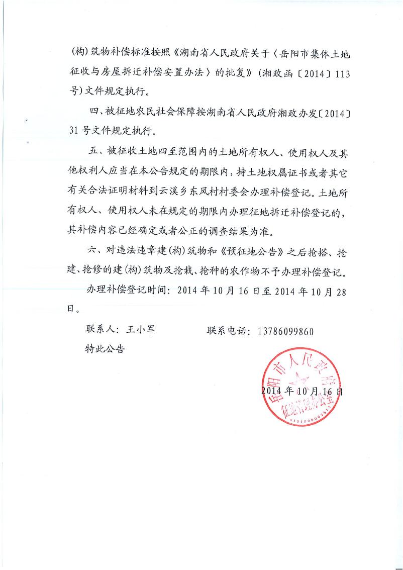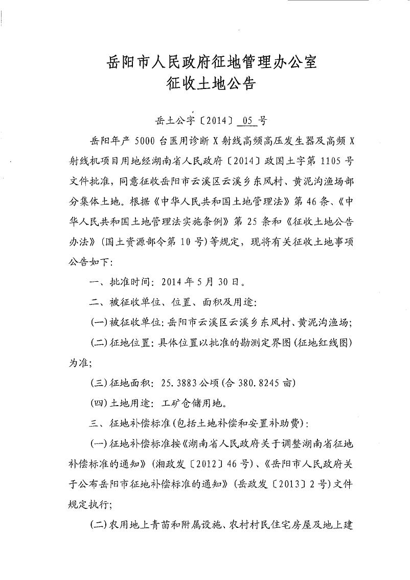 岳阳市人民政府征地管理办公室征收土地公告|岳土公字[2014]05号