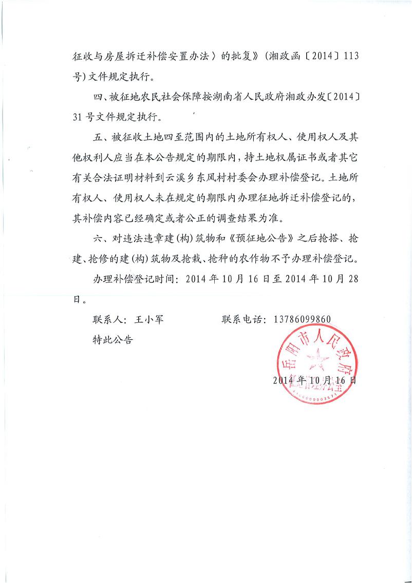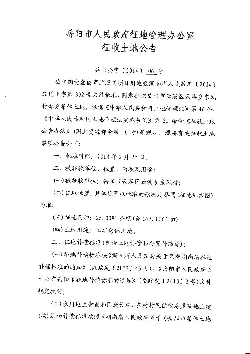 岳阳市人民政府征地管理办公室征收土地公告|岳土公字[2014]06号