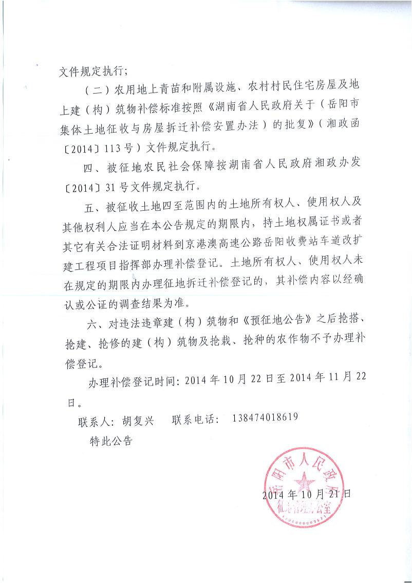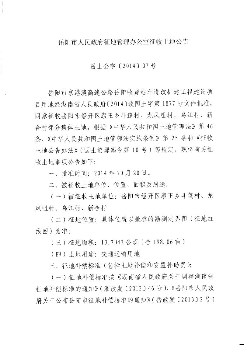 岳阳市人民政府征地管理办公室征收土地公告|岳土公字[2014]07号
