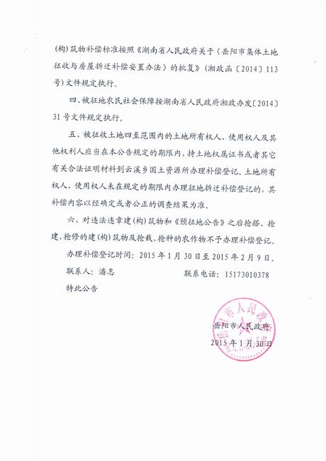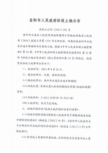 岳阳市人民政府征地管理办公室征收土地公告|岳土公字[2015]01号