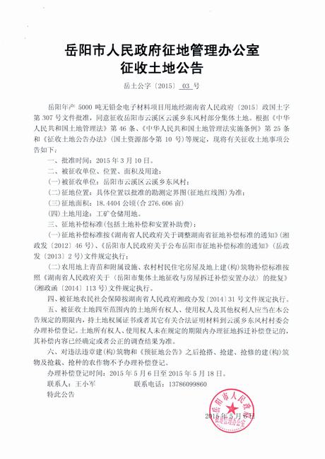 岳阳市人民政府征地管理办公室征收土地公告|岳土公字[2015]03号