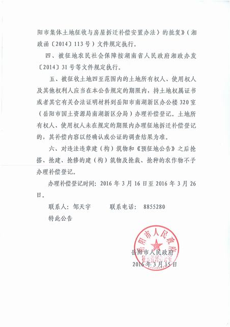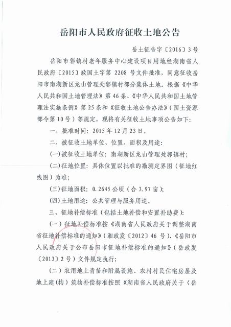 岳阳市人民政府征收土地公告|岳土征告字〔2016〕03号