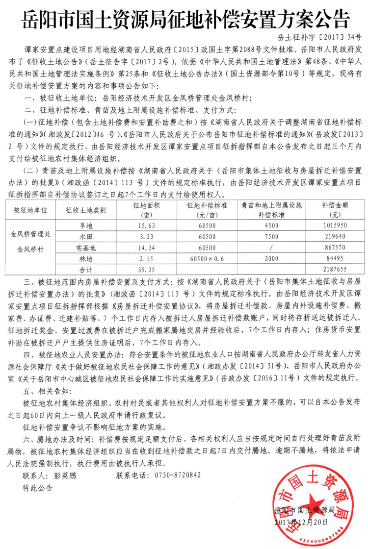 谭家安置点项目征地补偿安置方案公告〔2017〕34号