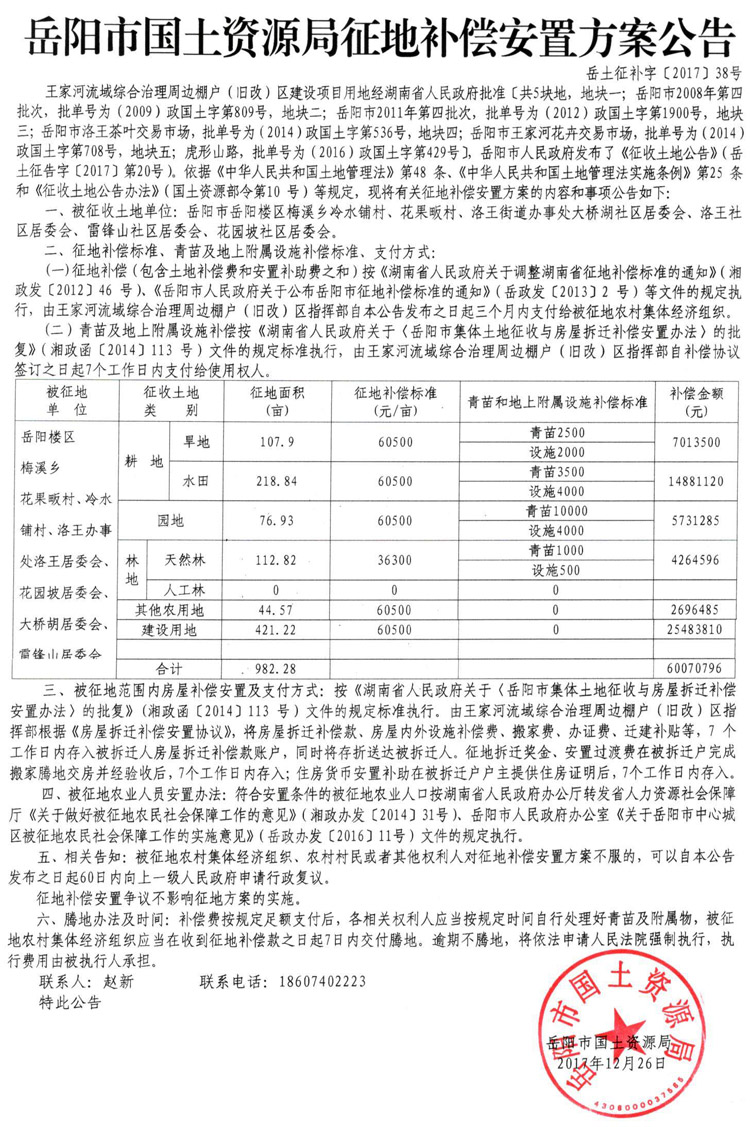王家河流域综合治理周边棚户(旧改)区建设项目征地补偿安置方案公告〔2017〕38号