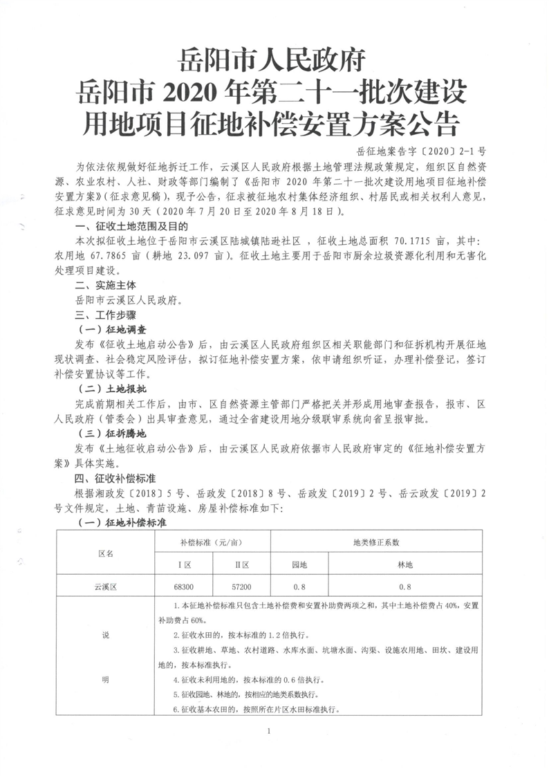 岳阳市2020年第二十一批次建设用地项目(岳阳市厨余垃圾资源化利用和无害化处理项目)﹝2020﹞2-1号