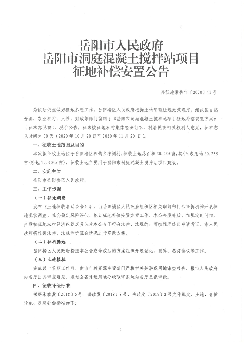 岳阳市洞庭混凝土搅拌站项目征地补偿安置公告