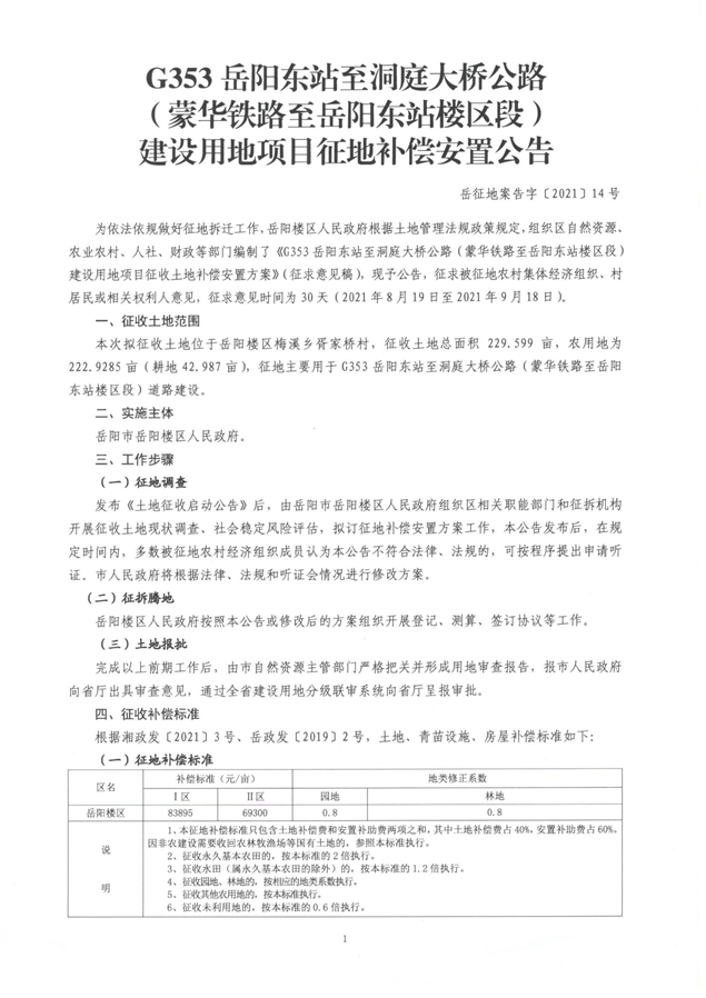 G353岳阳东站至洞庭大桥公路(蒙华铁路至岳阳东站楼区段)建设用地项目征地补偿安置公告新闻发布