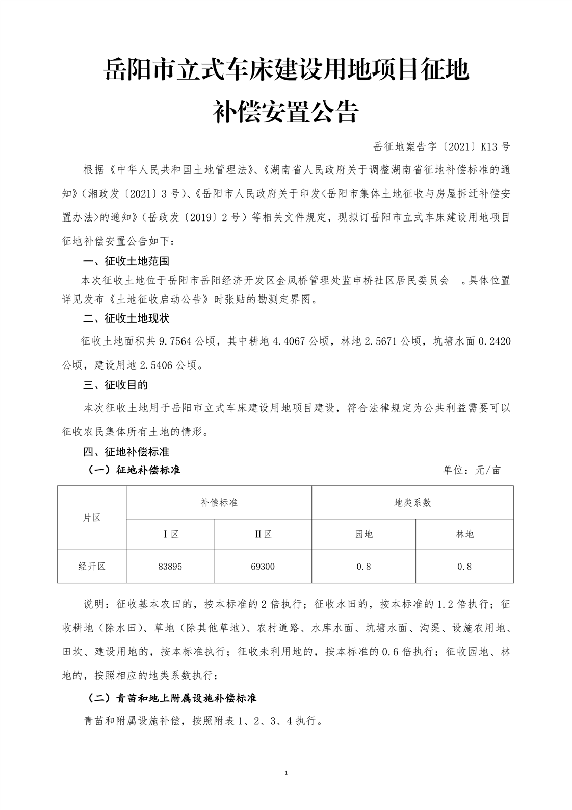 岳阳市立式车床建设用地项目征地补偿安置公告新闻发布