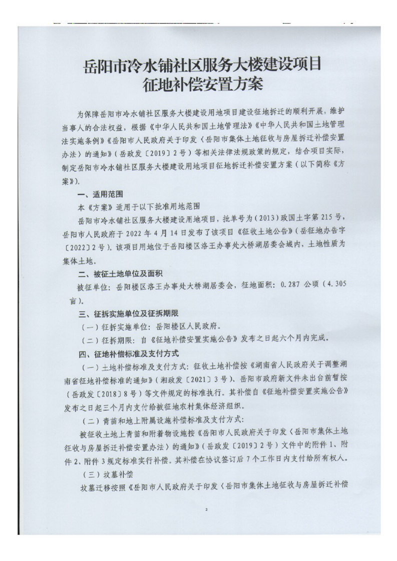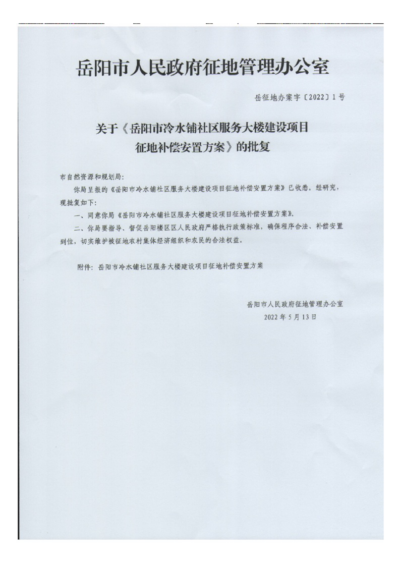 岳阳市冷水铺社区服务大楼建设项目征地补偿安置方案新闻发布