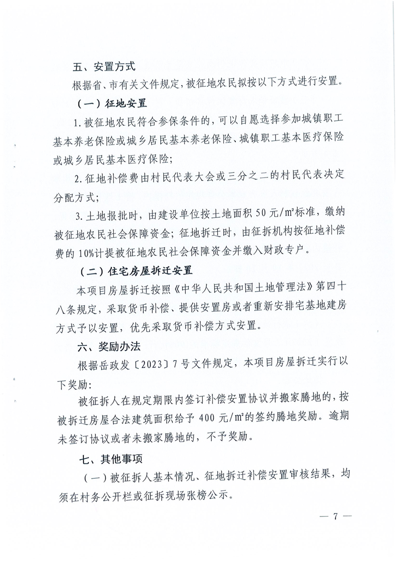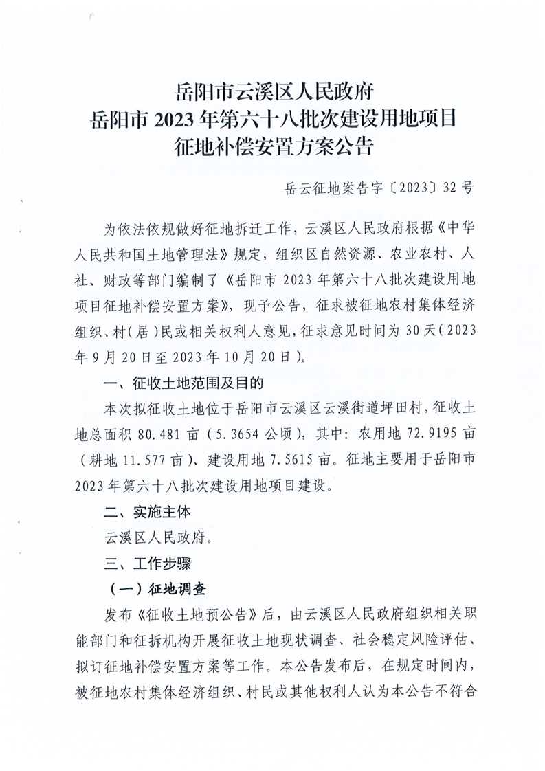 岳阳市2023年第六十八批次建设用地项目征地补偿安置方案公告